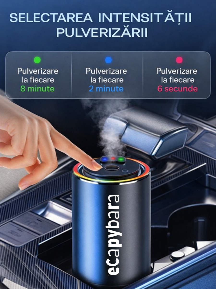 Descoperă odorizantul auto eCapybara, combinația perfectă între design modern și funcționalitate. Dispozitivul oferă proiecție în 3 culori, iluminare RGB și pulverizare inteligentă, ajustând intensitatea mirosului pentru confort la volan.